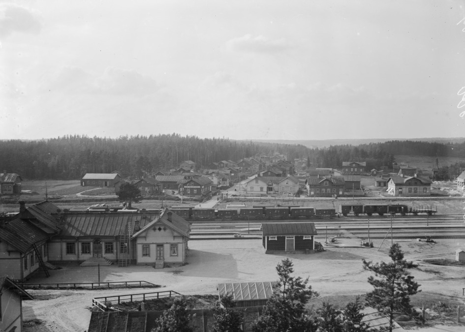 Karjaan rautatieasema. Kuva: M. L. Carstens, Historian kuvakokoelma, Museovirasto.