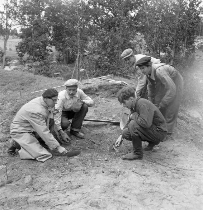 Junkarsborgin kaivaukset Karjaalla vuonna 1952. Kuva: Bror Brandt, Västra Nyland, JOKA