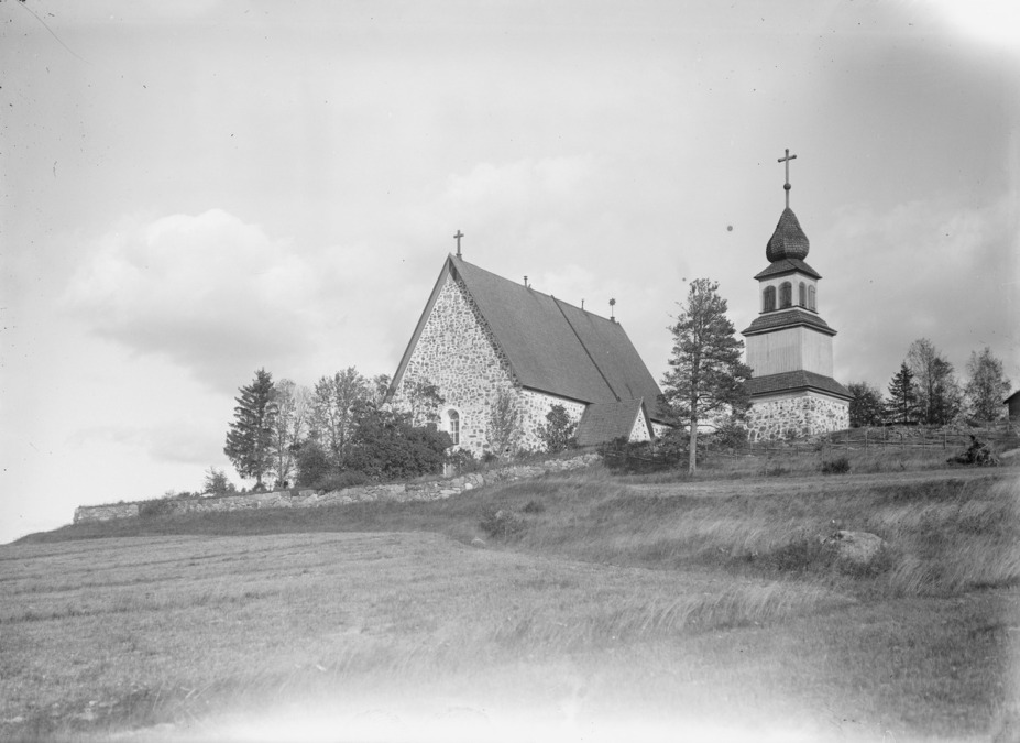 Karjaan keskiaikainen kivikirkko. Kuva: M. L. Carstens, Historian kuvakokoelma,